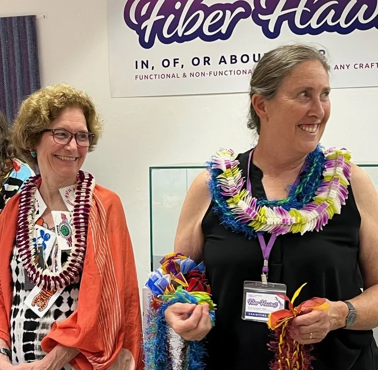 I recently returned from a week in Honolulu in which I juried the biennial Fiber Hawai’i exhibit, presented a lecture and workshop, survived two live television interviews, and led a juror walkthrough of the exhibit. In between my official duties I visited museums, enjoyed Lei Day, went snorkeling and learned to paddle board. What a week! Mahalo (thank you) to Liz Train, Fiber Hawai’i Chair, and to everyone at Hawai’i Craftsmen for their hospitality.