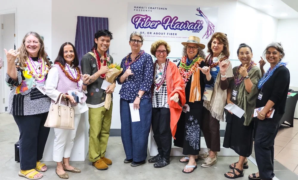 The walkthrough was followed by the awards ceremony. Left to right: Liz Train (Fiber Hawai’i Liason and Chair) Ghislaine Chock, Sheldon Wong, Wendy Kawabata, Cameron Taylor-Brown, Glorianne Garza, Pauline Sheldon, Junco Sato Pollack, Pratisha Budhiraja